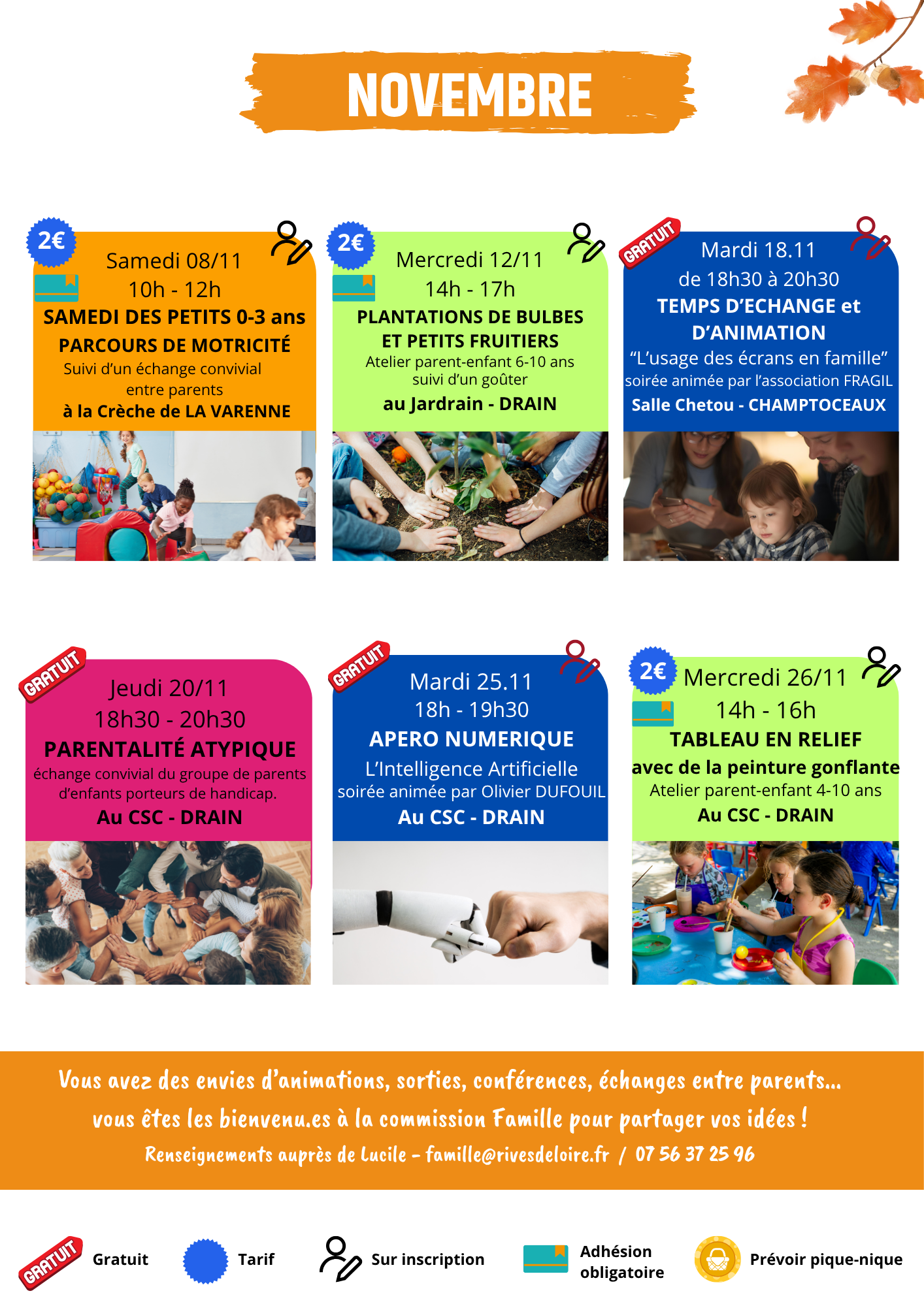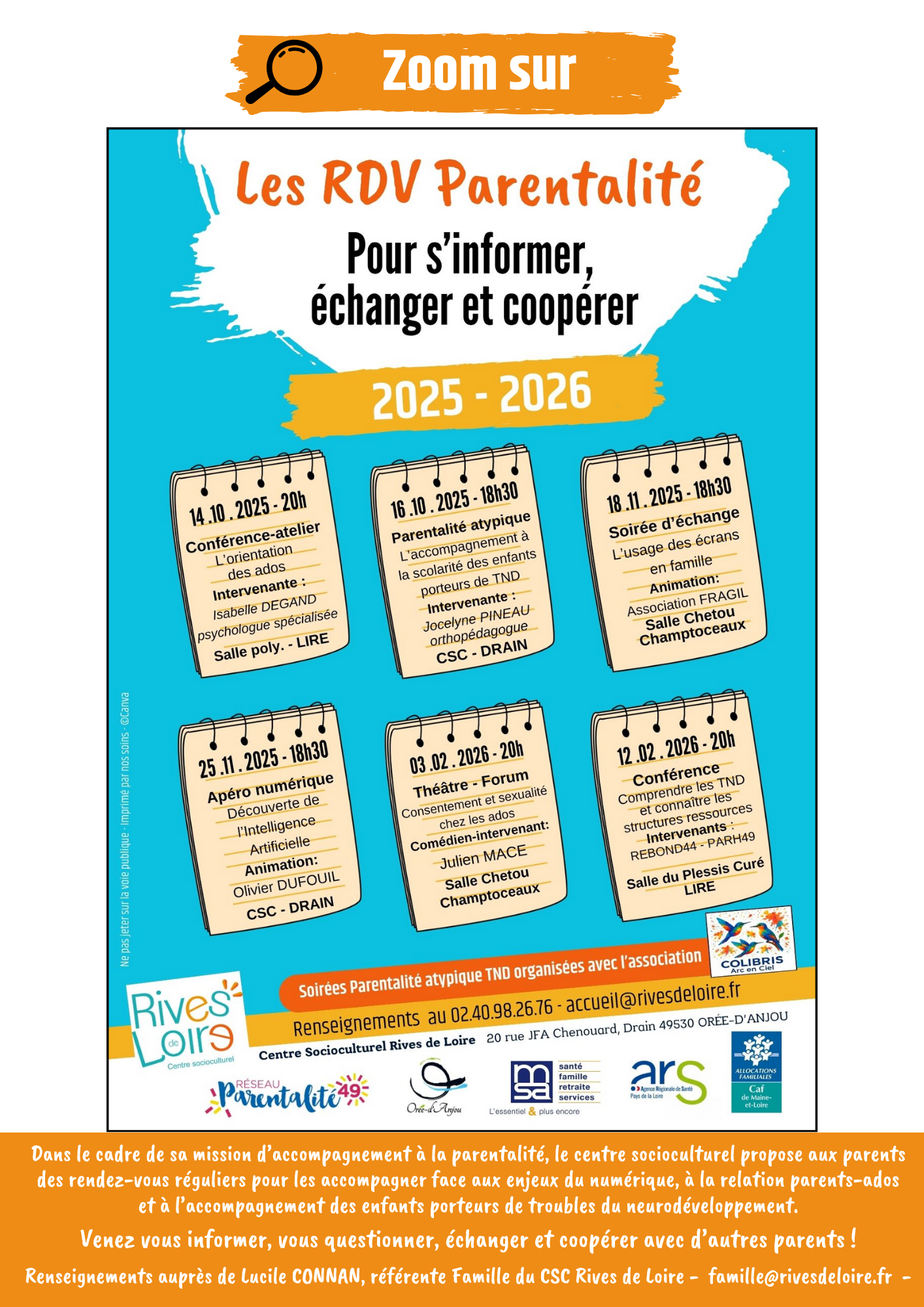 o Le 18/11 : Une soirée d’échange essentielle et constructive ! Venez discuter sereinement des enjeux liés aux écrans à la maison, partager vos expériences et repartir avec des conseils concrets pour un équilibre familial. Une seconde soirée est prévue le 9/12.