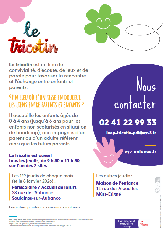 Le Tricotin est un lieu d’accueil visant à favoriser le lien social, la rencontre et les échanges entre professionnels, parents et enfants.