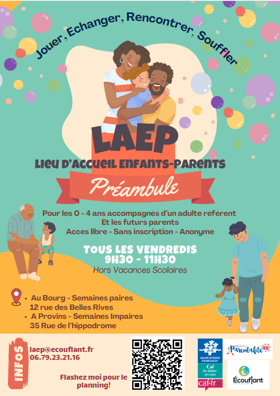– Écouflant bourg dans les locaux du Relais Petite Enfance, 12 rue de Belles Rives :