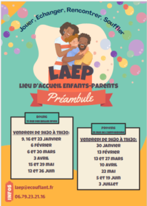 Le LAEP est un espace pensé pour favoriser les échanges entre enfants et adultes, mais aussi entre adultes. On y vient sans inscription, gratuitement, quand on le souhaite, pour un moment de jeu, de discussion ou tout simplement de présence partagée. Ce n’est ni une crèche, ni un lieu de garde, mais un lieu d’écoute, de rencontre et de bienveillance, où les familles sont accueillies par deux professionnelles.