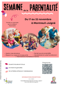 Le Collectif Parentalité* de la Maison des Habitants de Montreuil-Juigné organise une semaine de la parentalité du 17 au 22 novembre 2025.