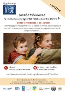 SOIRE D’ECHANGE « COMMENT ACCOMPAGNER LES RELATIONS DANS LA FRATRIE »